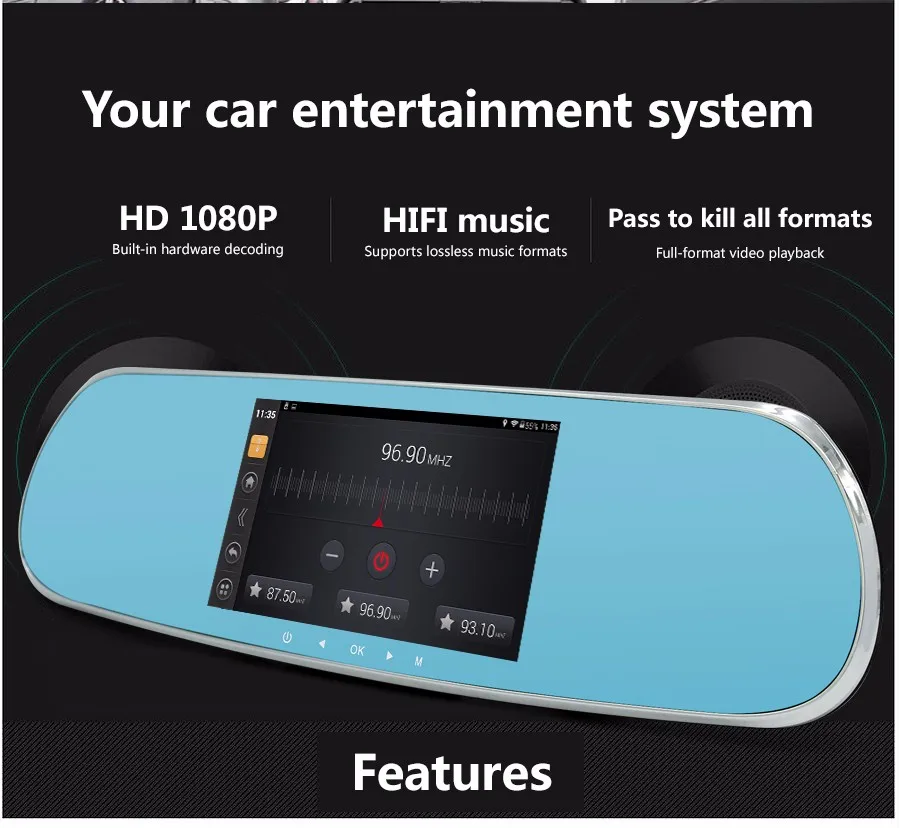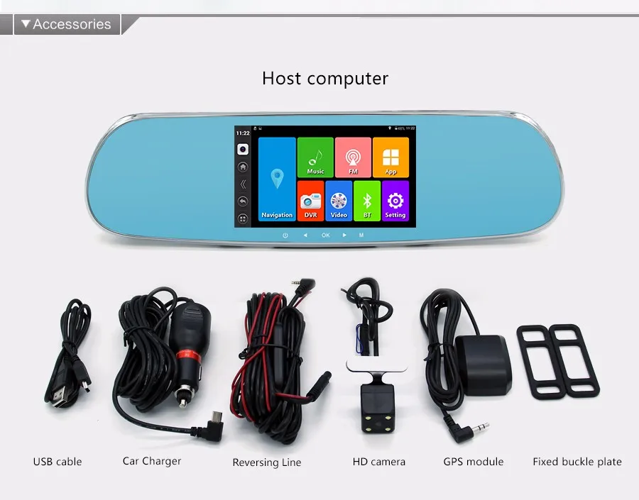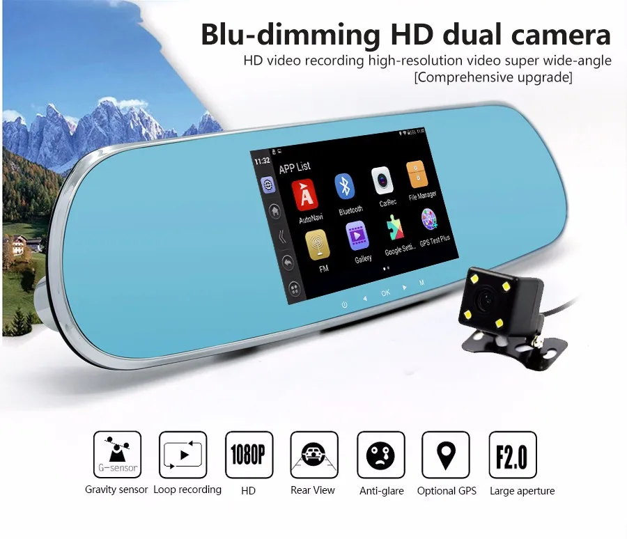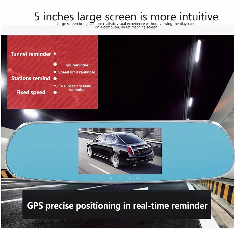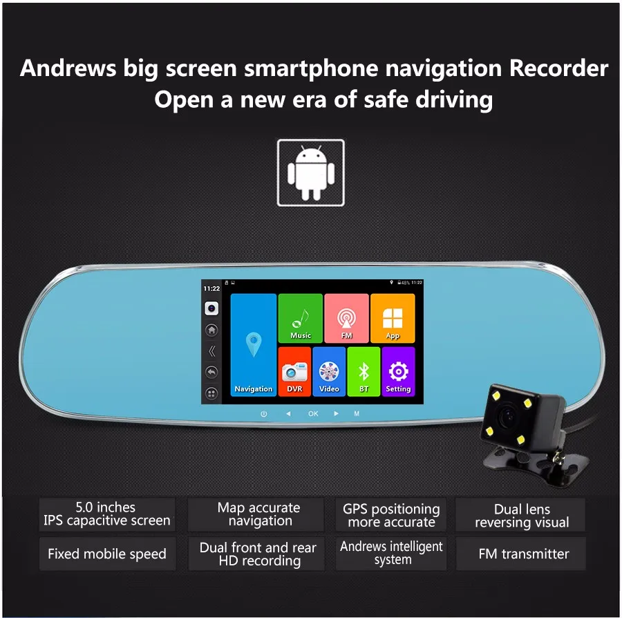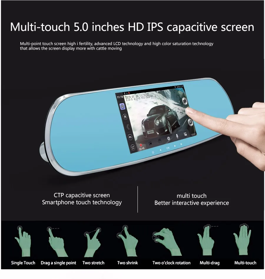 5 inch Car DVR camera Touch Bluetooth Car Rearview Mirror Dual camera FHD 1080P Android GPS DVR navigation Free map