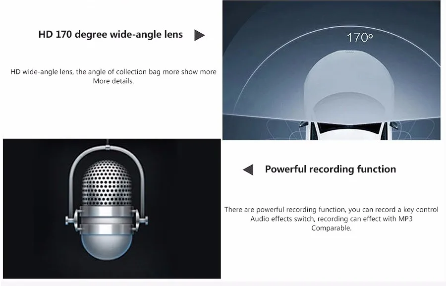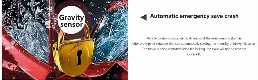 - It supports gravity sensor, that is, when the vehicle collision, it will save the last recording immediately,